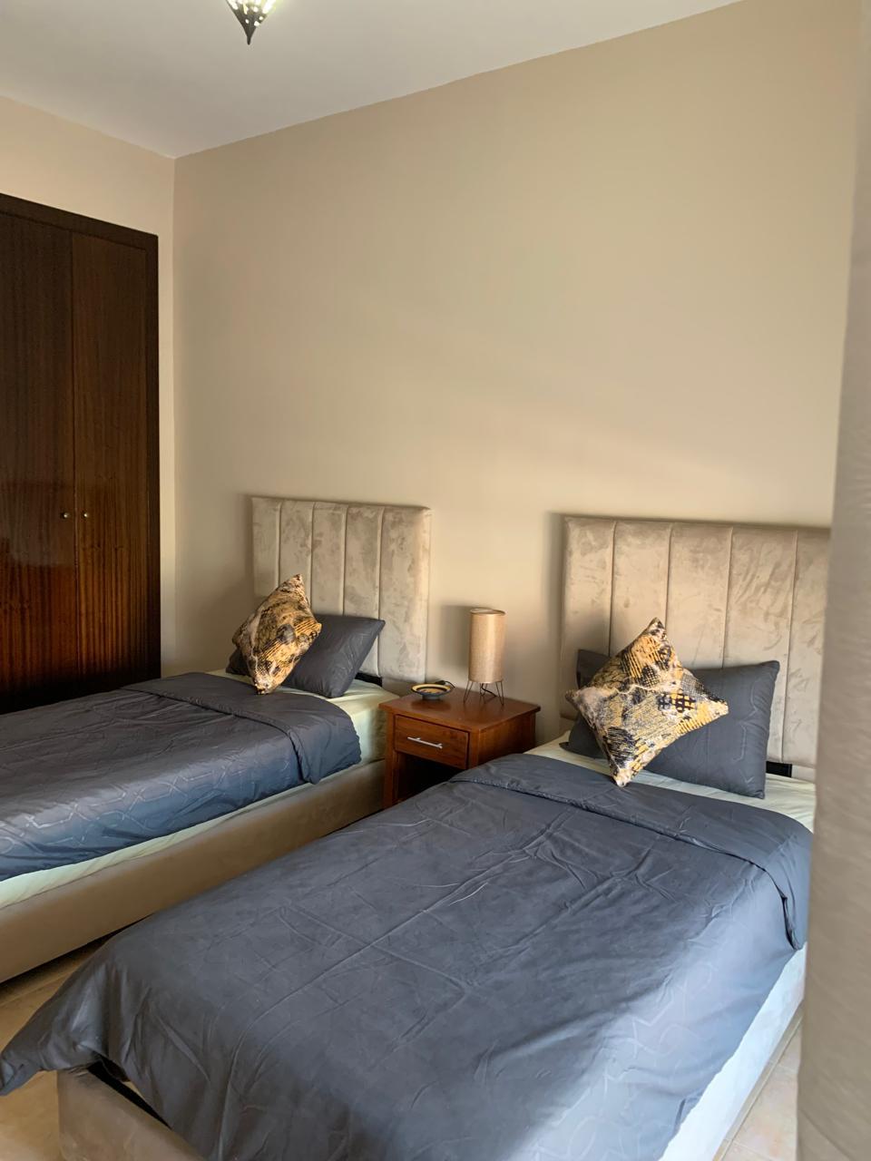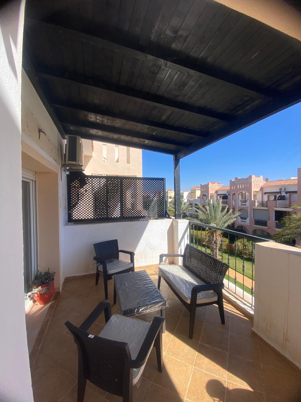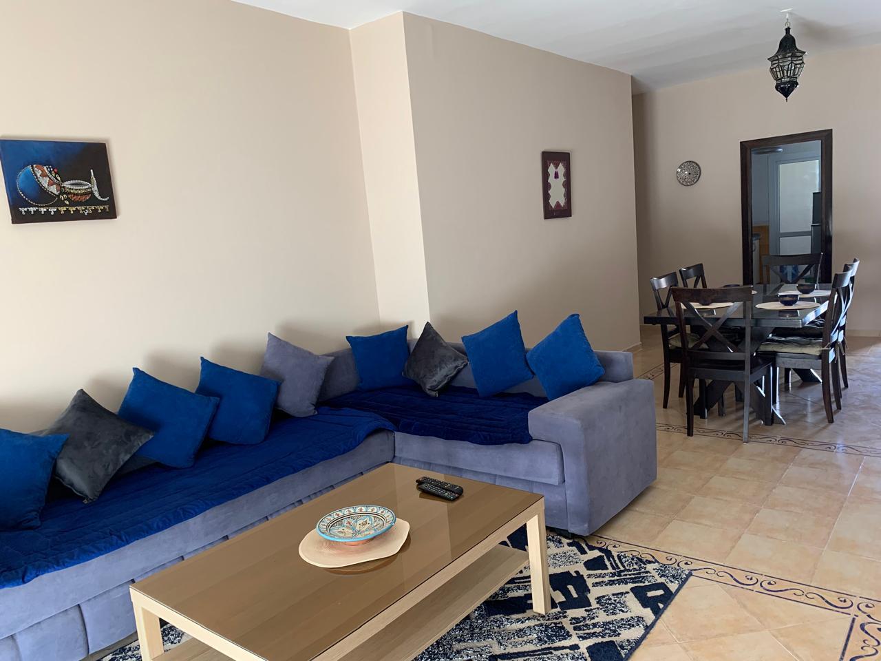 Appartement a residence al waha situe a saidia de 2 chambres, salon, 2 salles de bains , cuisine bien équipée et la terrasse vue piscine
