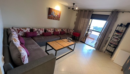 Un appartement bien équipé situé à rez de chaussé dans la résidence touristique bahia del cabo elle se compose deux chambres , un chambre parental avec un grand lit un accès au terrasse et un salle de bain équipée privé pour les parents , un chambre pour les enfants , avec deux lits simple , un salle de bain partager , une cuisine marocain bien équipé , un salon style européen , un sala manger et un terrasse dans une résidence fermé avec deux grande piscines , les parking , jardin , équipe de sécurité travaille 24/24 à proximité de tous les commodité necessaire