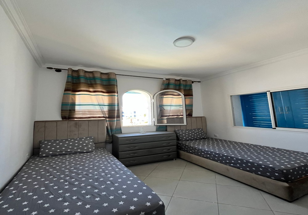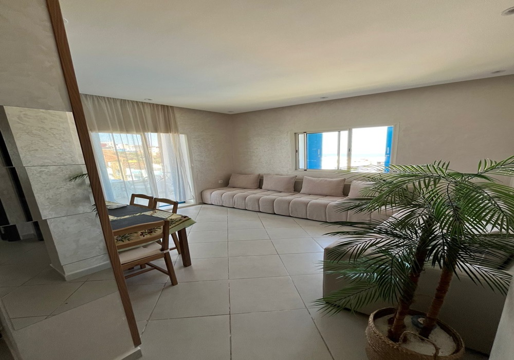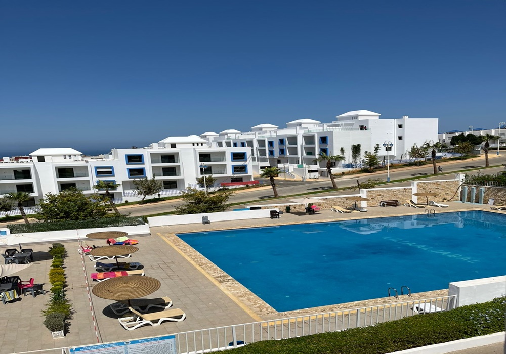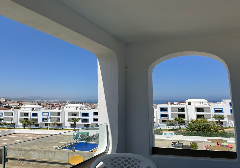 Appartement meublé et bien équipé situé à résidence lilya al jabal à mdiq elle se compose deux chambres a coucher un salon moderne , un salle de bain , cuisine et terrasse vue sur mer et sur mer , résidence fermé situé à mdiq avec un grand piscine pour les adult et un piscine pour les enfants de magnifique vue sur mer a proche de la plage à 5 min à proximité de tous les commodité